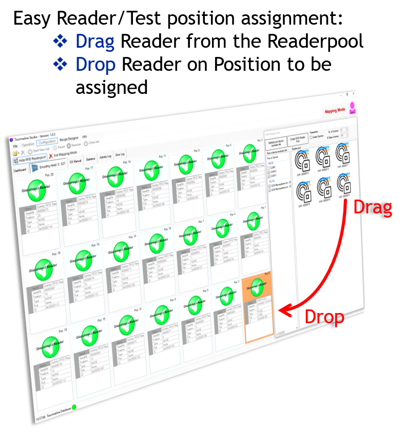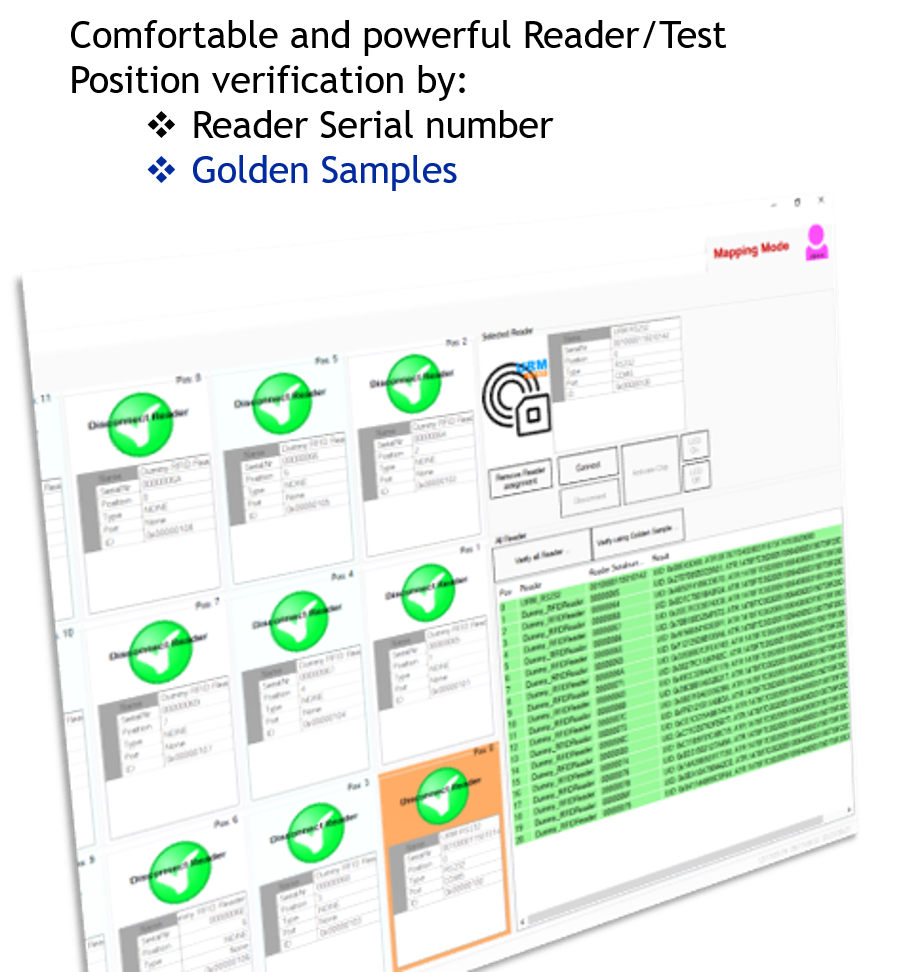 Comfortable test position assignment validation using the reader’s serial number or Golden Samples